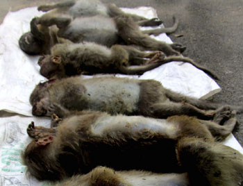 പാലോട്: കുരങ്ങുകളെ കൂട്ടത്തോടെ ഫ്യൂരിഡാന് വിഷം കൊടുത്ത് കൊന്നു.പതിഞ്ചോളം കുരങ്ങന്മാരെയാണ് ഫ്യൂരിഡാന് വിഷം കൊടുത്ത് കൊലപ്പെടുത്തിയത്.രഹസ്യ വിവരത്തെ തുടര്ന്ന് വനപാലകര് നടത്തിയ തെരച്ചിലില് ഏഴു കുരങ്ങുകളുടെ ജഡം കുഴിച്ചിട്ട നിലയില് കണ്ടെത്തി. ആറുമാസം മുതല് ഏഴുവയസുവരെ പ്രായമുള്ള കുരങ്ങുകളാണ് ചത്തത്.ആറുമാസം മുതല് ഏഴുവയസുവരെ പ്രായമുള്ള കുരങ്ങുകളാണ് ചത്തത്.അഞ്ചു വലിയ കുരങ്ങുകളും രണ്ടു കുട്ടിക്കുരങ്ങന്മാരുമാണ് ചത്തുകിടന്നത്. മരണത്തിലും മക്കളെ മാറത്തൊതുക്കിയ അമ്മക്കുരങ്ങിൻറെ കാഴ്ച വേദനയായി.പാലോട് റേഞ്ച് ഓഫീസ് പരിധിയില്പ്പെട്ട ജവഹര് കോളനി സേനാനിപുരത്താണ് സംഭവം.കുരങ്ങുകളെ വിഷംകൊടുത്തു കൊന്ന സംഭവത്തില് സേനാനിപുരത്തെ കരാര് തൊഴിലാളിയെ സംശയിക്കുന്നതായി റേഞ്ച് ഓഫീസര് അബ്ദുല് ജലീല് പറഞ്ഞു.മുന്പും ഇയാള് കാട്ടുമൃഗങ്ങളെ കൊല്ലാന് ശ്രമിച്ചിട്ടുണ്ട്.ശനിയാഴ്ച ഉച്ചയോടെയാണ് ഈ പ്രദേശത്ത് കാട്ടുകുരങ്ങുകള് ചത്തുവീണു തുടങ്ങിയത്.വൈകുന്നേരത്തോടെ നാലു കുരങ്ങുകളെ പ്രദേശവാസിയായ ഒരാള് എടുത്തുകൊണ്ടുപോകുന്നത് കണ്ട നാട്ടുകാരാണ് വിവരം പാലോട് റേഞ്ച് ഓഫീസറെ അറിയിച്ചത്.കുരങ്ങന്മാരുടെ മരണകാരണം വിശകലനം ചെയ്യുന്നതിനായി ശവശരീരങ്ങള് പാലോട് വെറ്ററിനറി ബയോളജിക്കല് ഇന്സ്റ്റിറ്റിയൂട്ടിലേക്ക് മാറ്റി.വനം/വന്യജീവി നിയമം അനുസരിച്ച് ഷെഡ്യൂള് മൂന്നില് ഉള്പ്പെടുന്ന ജീവിയാണ് കാട്ടുകുരങ്ങ്.ഇവയെ കൊല്ലുന്നത് മൂന്നുവര്ഷം കഠിനതടവും 25,000 രൂപ പിഴയും ഈടാക്കാവുന്ന കുറ്റമാണെന്ന് വനംവകുപ്പ് ഉദ്യോഗസ്ഥര് പറയുന്നു.കണ്ടെടുത്ത ജഡങ്ങള് പാലോട്ടെ വെറ്ററിനറി ബയോളജിക്കല് ഇന്സ്റ്റിറ്റിയൂട്ടില് പോസ്റ്റ് മോര്ട്ടത്തിനായി മാറ്റി.