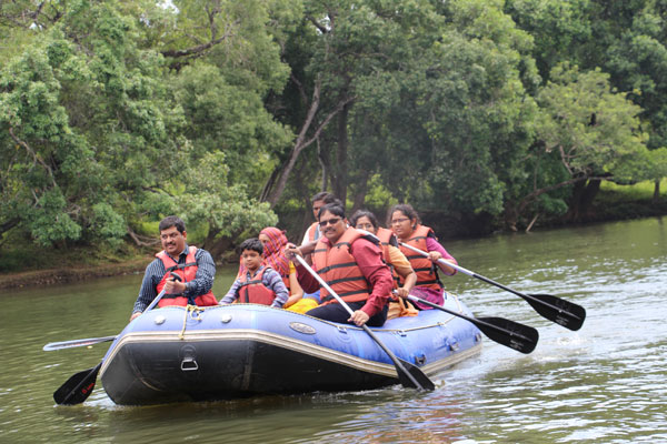ഞങ്ങൾ എത്തുമ്പോൾ അവിടെ സഞ്ചാരികളെ കൊണ്ട് നിറഞ്ഞിരുന്നു.  കുടകിന്റെ മാതാവ് എന്നറിയപ്പെടുന്ന    കാവേരി നദിയുടെ തീരത്താണ് ദുബേര.ആന സഫാരി ,റാ ഫ്റിംഗ് എന്നിവയ്ക്കുള്ള സൗകാര്യങ്ങൾ അവിടെ ഉണ്ട്.വണ്ടി പാർക്കിങ്ങിനായി കുറച്ച് വിഷമിച്ചു.കാറിൽ നിന്നിറങ്ങി കുറച്ച് ഫോട്ടോകൾ എടുത്തു .ശേഷം നേരെ നഫ്റ്റിങ്ങിനായാണ് പോയത് .എയർ ബാഗുകൾ എടുത്തണിഞ്ഞ് ബോട്ടിൽ കയറി.രണ്ട് ഗൈഡുകൾ ഞങ്ങൾക്ക് കൂട്ടായുണ്ട്.ഒരുവഞ്ചി പാട്ടോടെ ഞങ്ങൾ തുഴയുവാൻ തുടങ്ങി.