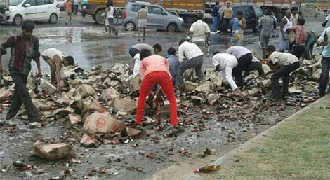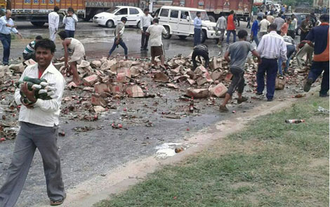 ജയ്പൂര്: ബിയര് കെയ്സുകള് നിറച്ച ഒരു ട്രക്ക് ജയ്പൂര്-അജ്മീര് ബൈപ്പാസില് നിയന്ത്രണം വിട്ട് വെള്ളിയാഴ്ച മറിഞ്ഞു. അപകടം കണ്ട് ഓടിക്കൂടിയ നാട്ടുകാര് അപകടത്തിൽ പെട്ടവരെ പോലും മറന്ന് ഒട്ടും സമയം കളയാതെ പൊട്ടാത്ത ബിയര് കുപ്പികളുമായി സ്ഥലംവിടാൻ തുടങ്ങി.