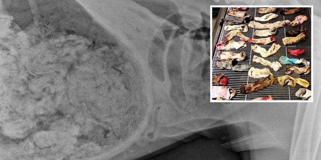 ന്യൂയോർക്ക് : നായ്ക്കുട്ടിയുടെ വയറ്റിൽ നിന്നും 43 സോക്സുകൾ പുറത്തെടുത്തു .അമേരിക്കയിലെ പോർട്ട്ലാന്റിലാണ് സംഭവം നടന്നത് .ഗ്രേറ്റ് ഡെയ്ൻ എന്ന മൂന്ന് വയസ്സുപ്രായമുള്ള നായക്കുട്ടിയുടെ വയറ്റിൽ നിന്നാണ് സോക്സുകൾ പുറത്തെടുത്തത്.ഓക്കാനവും മറ്റ് ശാരീരിക അസ്വസ്ഥതകളും കണ്ടതിനെ തുടർന്നാണ് ഉടമസ്ഥൻ അതിനെയും കൊണ്ട് മൃഗാശുപത്രിയിലെത്തിയത്. ഡോക്ടർമാർ എക്സ-റേ എടുത്ത് പരിശോധിച്ചപ്പോൾ നായ്ക്കുട്ടിയുടെ വയറ്റിൽ എന്തൊക്കെയോ സാധനങ്ങൾ കിടക്കുന്നത് കണ്ടു. പിന്നീട് ശസ്ത്രക്രിയക്ക് വിധേയനാക്കിയപ്പോഴാണ് ഡോക്ടർമാർ ശരിക്കും ഞെട്ടിയത്. തുടർന്ന് രണ്ട് മണിക്കൂർ നീണ്ട ശസ്ത്രക്രിയയ്ക്കൊടുവിലാണ് 43 സോക്സുകൾ പുറത്തെടുത്തത് . .ഇത്തരം ഒരു സംഭവം ചരിത്രത്തിലേ ഉണ്ടായിരികാനിടയില്ലെന്ന് ശസ്ത്രക്രിയയ്ക്ക് നേതൃത്വം നൽകിയ ഡോ.ആഷ്ലി മാഗി പറഞ്ഞു. ഡോക്ടർമാരുടെ കണക്ക് പ്രകാരം നാൽപ്പത്തി മൂന്നര സോക്സാണ് നായ്ക്കുട്ടി വയറ്റിലാക്കിയത്.ശസ്ത്രക്രിയയ്ക്ക് ശേഷം ഒരു ദിവസത്തിന് ശേഷം ഗ്രെയ്റ്റ് ഡെയ്ൻ ആശുപത്രി വിട്ടു.