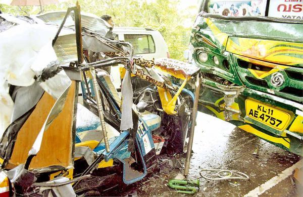 പയ്യോളി: ദേശീയപാതയില് ബസും ഓട്ടോയും കൂട്ടിയിടിച്ചുണ്ടായ അപകടത്തിൽ ഓട്ടോയാത്രക്കാരായ മൂന്ന് യുവാക്കള് മരിച്ചു. ഒപ്പമുണ്ടായിരുന്ന യുവതിക്ക് പരിക്കേറ്റു.ചൊവ്വാഴ്ച രാവിലെ 11 മണിക്ക് പയ്യോളി ഹയര്സെക്കന്ഡറി സ്കൂളിനു സമീപമാണ് അപകടം നടന്നത്.വടകര കോട്ടപ്പള്ളി ചിരുകണ്ടോത്ത് വിജയന്െറ മകന് രാഹുല് (21), കോട്ടപ്പള്ളി കുന്നോത്ത് നളിനിയുടെ മകന് രാജീവന് (22), പുറകുന്നോത്ത് കണ്ണന്െറ മകന് സനൂപ് (25) എന്നിവരാണ് അപകടത്തിൽ മരിച്ചത്. വടകര പുതിയാപ്പ് വലിയപറമ്പ് അമൃതയെ പരിക്കേറ്റ നിലയില് മെഡിക്കല് കോളജ് ആശുപത്രിയില് പ്രവേശിപ്പിച്ചു. മരിച്ച മൂന്നു പേരും സുഹൃത്തുക്കളാണ്.വടകരയില്നിന്ന് കൊയിലാണ്ടി ഭാഗത്തേക്ക് പോവുകയായിരുന്നു ഓട്ടോയിലുണ്ടായിരുന്നവര്. മറ്റൊരു വാഹനത്തെ മറികടക്കാനുള്ള ശ്രമത്തിനിടെ ഓട്ടോറിക്ഷ കോഴിക്കോടുനിന്ന് വടകരയിലേക്ക് വരുകയായിരുന്ന ‘വെസ്റ്റ്കോസ്റ്റ്’ ബസില് ഇടിച്ചാണ് അപകടം ഉണ്ടായത്. അപകടത്തിൽപ്പെട്ടവരെ കോഴിക്കോട് മെഡിക്കല് കോളജ് ആശുപത്രിയില് എത്തിച്ചെങ്കിലും രാഹുലും രാജീവനും മരിച്ചു. വൈകുന്നേരത്തോടെ സനൂപും മരണത്തിന് കീഴടങ്ങി.