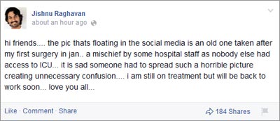 actor-jishnu-raghavan-denied-his-treatment-news-spreading-in-social-media