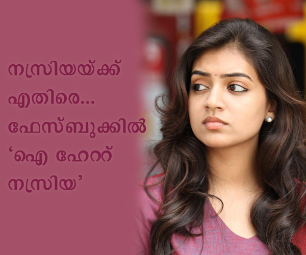 മലയാളത്തിലെ പുത്തന് താര തിളക്കമായി മാറിയ നസ്രിയ നസീമിനെതിരെ ഫേസ്ബുക്കില് “ഐ ഹേറ്റ് നസ്രിയ” എന്ന പേരിൽ ഒരു പേജ്. ആറായിരത്തില് അധികം ലൈക്കുകള് പേജിന് കേരളത്തിലും തമിഴ്നാട്ടിലും പേജിന് അഡ്മിന് ഉണ്ട് . പേജിന്റെ ഉള്ളടക്കം നോക്കുന്നവര്ക്ക് മനസിലാകുന്ന ഒരു കാര്യം മലയാള താരങ്ങളായ മമ്മൂട്ടിയെയും മകന് ദുല്ക്കറിനെയും മാത്രം പിന്തുണക്കുന്ന പേജില് മോഹന്ലാല്, പ്രിഥ്വിരാജ് തുടങ്ങിയവരെ കുറ്റപെടുത്തുന്നുമുണ്ട്. മാത്രമല്ല ഒരു മുസ്ലിം പെണ്കുട്ടിയായ നസ്രിയ അഭാസപരമായ ചിത്രങ്ങളാണ് തന്റെ പേജില് പോസ്റ്റ് ചെയ്യുന്നതെന്നും മുസ്ലിം പെണ്കുട്ടികള്ക്ക് തന്നെ നസ്രിയ നാണക്കേടാണ് എന്ന തരത്തിലുള്ള മതപരമായ മറ്റു കമന്റുകളും ഈ നടിക്കെതിരെ പേജില് പോസ്റ്റ് ചെയ്തിരിക്കുന്നു.