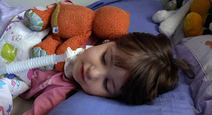 നാല് വര്ഷത്തെ നീണ്ട കാത്തിരിപ്പിനൊടുവില് കൃത്വിമ ബീജ സങ്കലനത്തിലൂടെയാണ് ഈ ദമ്പതികള്ക്ക് പൗലയെ ലഭിക്കുന്നത്. ഓണ്ഡയിന് സിന്ഡ്രോം എന്ന അപൂര്വ്വങ്ങളില് അപൂര്വ്വമായ ഒരു രോഗമാണ് കുട്ടിക്ക് ഈ അവസ്ഥ വരാന് കാരണമായത്. ലോകത്ത് തന്നെ 1000 മുതല് 1200 വരെ ആളുകള്ക്ക് മാത്രമുള്ള അസുഖം. പകല് സാധാരണ കുട്ടികളെ പോലെ സ്കൂളില് പോകുകയും കളിക്കുകയും ഭക്ഷണം കഴിക്കുകയും ചെയ്യുന്ന പൗല പക്ഷെ രാത്രിയാകുമ്പോള് ഉറങ്ങിപ്പോകാതിരിക്കാന് ഈ അച്ഛനും അമ്മയും പെടാപാട് പെടുകയാണ്. രാത്രിയില് വെന്റിലേറ്ററിന്റെ സഹായത്തോടെ കഴുത്തില് ഘടിപ്പിച്ച ട്യൂബ് വഴി ഓക്സിജന് നല്കിയാണ് ഈ കുഞ്ഞിന്റെ ജീവന് നിലനിര്ത്തുന്നത്.