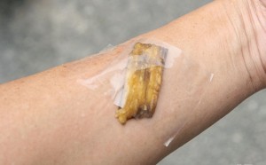 വേദനയുള്ള ഭാഗത്ത് പഴത്തൊലി അരച്ച് പുരട്ടുക. അതിനു ശേഷം അരമണിക്കൂര് കഴിഞ്ഞോ വേദന മാറിയതിന് ശേഷമോ ഇത് കഴുകി കളയാവുന്നതാണ്.