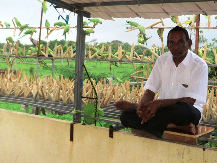 ഏകദേശം രണ്ടായിരത്തിനും മൂവായിരത്തിനുമിടയില് തത്തകളും രണ്ടായിരത്തോളും തുന്നല്ക്കുരുവികളും നാലായിരത്തോളം മറ്റു കുരുവികളുമാണ് ദിവസേന ഇവിടേക്കെത്തുന്നതെന്ന് ഹര്സുഖ്ഭായി പറയുന്നു.