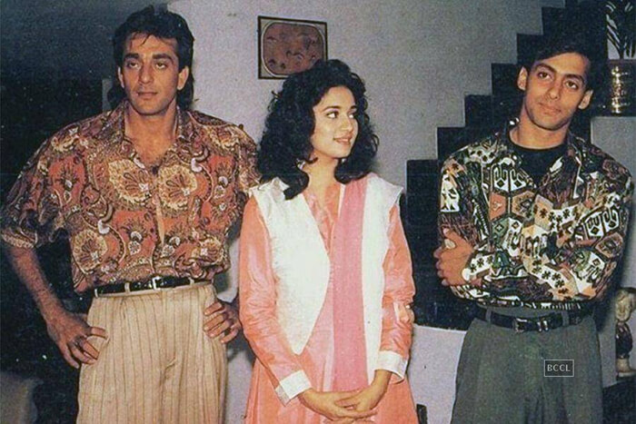 ലോറന്സ് ഡിസൂസയുടെ മ്യൂസിക്കല് റൊമാന്റിക്ക് ചിത്രമായ സാജന്റെ സെറ്റില് നിന്നുള്ള അപൂര്വ ചിത്രം. സഞ്ജയ് ദത്തും മാധുരി ദീക്ഷിത്തും സല്മാന് ഖാനുമൊന്നിച്ച സാജന്, 1991ലെ വന് ഹിറ്റായിരുന്നു.