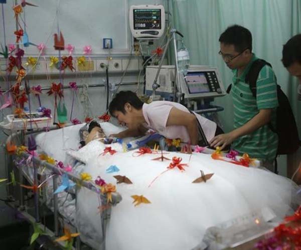 ഗ്വാങ്ഡോങ്: ജീവിച്ചു കൊതിതീരും മുൻമ്പേ ചിലരെ മരണം വന്നു വിളിക്കും.ചൈനയില് ഗ്വാങ്ഡോങ് പ്രവിശ്യയില് മാതാപിതാക്കളുടെ ഏക സന്തതിയായാണ് ജിങ്ജോങ് .പക്ഷേ ദുരന്തം ഈ യുവതിയുടെ ജീവിതം തന്നെ തകര്ത്തു കളഞ്ഞു. ഗവണ്മെന്റ് ജോലി നേടിയ ജിങ്ജോങിന് ഇനിയൊരു കൂട്ട് വേണമെന്ന് തോന്നിയ സമയത്ത് ലുലായ് എന്ന യുവാവുമായി പ്രണയത്തിലായി.വരുമാനത്തില് നിന്നും ഒരുവിഹിതം മാറ്റിവെച്ച് ഭാവി ജീവിതത്തിനായി ഒരു വീട് കണ്ടെത്തുവാനും ഇവര് മറന്നില്ല.. പക്ഷേ മരണം ഇവരുടെ പ്രതീക്ഷകളെല്ലാം തകർത്തുകളഞ്ഞു.പെട്ടന്നുള്ള മരണമല്ല സംഭവിച്ചത്.ഒന്നു മറിയാതെയുള്ള മരണം.ചുറ്റിലും ഉറ്റവർ സ്നേഹത്തോടെ തലോടിയിട്ടും അതറിയാതെയുള്ള കോമ സ്റ്റേജ് . ഇങ്ങനൊരു വിധി ആർക്കും ഉണ്ടാകരുത്