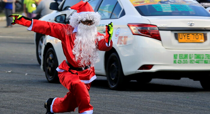 എന്നാല് ട്രാഫിക്ക് പൊലീസായ റാമിറോ ഹിനോജാസ് എന്ന 51കാരന് വ്യത്യസ്തമായ ഒരു ആശയം തോന്നി. പിന്നീട് മനിലയിലെ റോഡില് കണ്ടത് ട്രാഫിക്ക് നിയന്ത്രിക്കുന്ന സാന്താക്ലോസിനെയാണ്. ഒരു ഹോളിഡേ മൂഡിനായിരുന്നു ഹിനോജാസിന്റെ ഈ പ്രവൃത്തി.