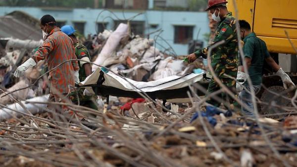 ഏപ്രില് 24നാണ് തലസ്ഥാന നഗരത്തിന് 30 കിലോമീറ്റര് അകലെ റാണ പ്ലാസ വാണിജ്യ സമുച്ചയം തകര്ന്നുവീണത്. മൂന്ന് വസ്ത്രനിര്മാണ യൂനിറ്റുകള്, ബാങ്ക് ശാഖ, മൂ്ന്നൂറിനടുത്ത് കടകള് എന്നി പ്രവര്ത്തിച്ചിരുന്ന എട്ടുനില കെട്ടിടമാണ് തകര്ന്നുവീണത്. 25000 പേര്ക്ക് പരിക്കേറ്റിട്ടുണ്ട്. അപകടസ്ഥലത്തുനിന്നും 2437 പേരെ സുരക്ഷിതരായി രക്ഷപ്പെടുത്തിയിരുന്നു. രക്ഷാപ്രവര്ത്തനം വെള്ളിയാഴ്ചയോടെ അവസാനിപ്പിക്കാന് കഴിയുമെന്നാണ് പ്രതീക്ഷ. കെട്ടിട അവശിഷ്ടങ്ങള് ബുള്ഡോസര് ഉപയോഗിച്ച് നീക്കുകയാണ്.
