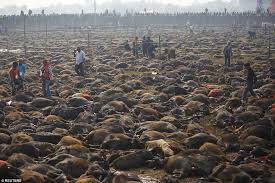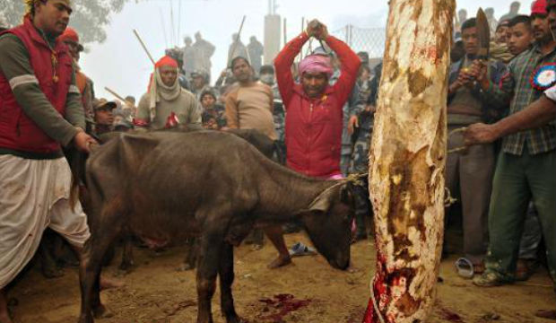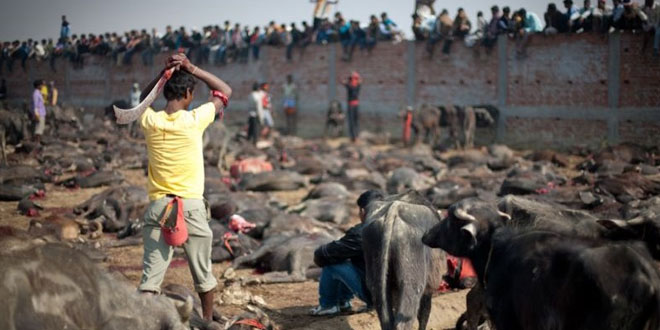 കാഠ്മണ്ഡു:ലോകത്തിലെ ഏറ്റവും വലിയ മൃഗബലിക്ക് നേപ്പാളില് തുടക്കമായി.ഇന്ത്യന് അതിര്ത്തിക്ക് സമീപമുള്ള ബരിയാപുര് ഗ്രാമത്തിലാണ് ഹിന്ദുക്കളുടെ ആഘോഷത്തിന്റെ ഭാഗമായി വെള്ളിയാഴ്ച മൃഗബലി നടന്നത്. അഞ്ചു വർഷത്തിലൊരിക്കൽ നടക്കുന്ന ചടങ്ങിൽ ലക്ഷക്കണക്കിന് മൃഗങ്ങളേയും പക്ഷികളേയുമാണ് ബലി നൽകുന്നത്. ആഗ്രഹ സാക്ഷാത്കാരത്തിന് വേണ്ടി ഗാന്ധിമയി ദേവിയെ പ്രീതിപ്പെടുത്തുന്നതിന് വേണ്ടിയാണ് ബലി നടത്തുന്നത്.ഇതിന് മുമ്പ് 2009-ല് നടന്ന മൃഗബലിയില് മൂന്ന് ലക്ഷം മൃഗങ്ങളെയാണ് ഇവിടെ കുരുതി കൊടുത്തത്.ഈ വര്ഷം ഇന്ത്യ എരുമകളെ അതിര്ത്തി കടത്തി കൊണ്ടു പോകുന്നത് തടഞ്ഞിരുന്നു. അതിനാല് ഇപ്രാവശ്യം എരുമകളുടെ എണ്ണം മുമ്പത്തേതിനാക്കാള് കുറവാണ്.ലക്ഷക്കണക്കിന് വിശ്വാസികളാണ് നേപ്പാളിലെ വിവിധ സംസ്ഥാനങ്ങളില് നിന്നും ഇന്ത്യയിലെ ബീഹാര്, ഉത്തര് പ്രദേശ് തൂടങ്ങിയ സംസ്ഥാനങ്ങളില് നിന്നുമായി മൃഗബലിക്ക് സാക്ഷിയാകാനെത്തിയിട്ടുള്ളത്. ബലിക്ക് തുടക്കം കുറിച്ചുകൊണ്ട് ക്ഷേത്രത്തിലെ മുഖ്യപൂജാരി തന്റെ വിരല് മുറിച്ച് രക്തം ചിന്തി. പിന്നീട് ഇയാള് ഒരു എലിയെ ബലിനല്കുകയും ചെയ്തു.ബലി നടക്കുന്ന ക്ഷേത്രത്തിടുത്തായി നിശബ്ദ പ്രതിഷേധവും നടക്കുന്നുണ്ട്. ബലി കഴിക്കപ്പെടുന്ന എരുമ, ആട്, കോഴി എന്നിവയുടെ അറുത്തെടുത്ത തലകള് വലിയ കുഴിയെടുത്ത് കുഴിച്ചുമൂടും. ഉടലും, തോലും ഇറച്ചിയുമെല്ലാം പ്രാദേശികമായി വിശ്വാസികള്ക്കിടയില് തന്നെ വിതരണം ചെയ്യും. എരുമകളുടെ ഇറച്ചി വാങ്ങുവാനായി പുറത്തു നിന്നും കച്ചവടക്കാര് എത്താറുണ്ട്. ബലിദാന പ്രദേശത്തെ തിരക്ക് നിയന്ത്രിക്കുവാന് ആയിരത്തിലധികം പോലീസുകാരാണ് ഉത്സവം നടക്കുന്ന ഗ്രാമത്തില് എത്തിയിരിക്കുന്നത്. മൈതാനത്തിനു ചുറ്റും അഞ്ച് അടി ഉയരത്തില് താത്ക്കാലിക മതില് കെട്ടിയതിന് പുറത്താണ് വിശ്വാസികള് നില്ക്കുക. മൃഗബലി നടത്തുന്നവരാണ് മൈതാനത്ത് മൃഗങ്ങള്ക്കൊപ്പമുണ്ടാവുക. ഉത്സവത്തോട് അനുബന്ധിച്ച് പ്രദേശത്ത് മദ്യവില്പ്പന നിരോധിച്ചിട്ടുണ്ട്. ഒറ്റപ്പെട്ട പ്രതിഷേധങ്ങള്ക്കിടയിലും കാര്യമായ പ്രതിബന്ധമില്ലാതെയാണ് ലോകത്തിലെ ഏറ്റവും വലിയ മൃഗബലി നടക്കുന്നത്.