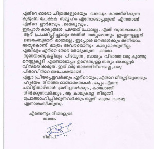 എങ്കിലും എന്റെ നേരെ തൊടുക്കുന്ന ഓരോ നുണയംമ്പുകളിലും പിടയുന്ന, ബാല്യം വിടാത്ത ഒരു കുഞ്ഞു മനസുകൂടി എന്നോടൊപ്പം ഉണ്ടെന്നുള്ള സത്യം അക്കൂട്ടം വിസ്മരിക്കരുത്. ഇത് ഒരു താരത്തിന്റെയല്ല ഒരു പിതാവിന്റെ അപേക്ഷയാണ്. എല്ലാ പ്രിയപ്പെട്ടവര്ക്കും എന്റെയും എന്റെ മീനൂട്ടിയുടെയും ഹൃദയം നിറഞ്ഞ ഓണാശംസകള്. ഒപ്പം എന്നെ ചവിട്ടിത്താഴ്ത്താന് ശ്രമിച്ചവര്ക്കും, കാലോങ്ങി നില്ക്കുന്നവര്ക്കും ആ കാലുകളെ തിരുമ്മി പ്രോത്സാഹിപ്പിക്കുന്നവര്ക്കും നല്ലത് മാത്രം വരട്ടെ എന്നാശംസിക്കുന്നു…