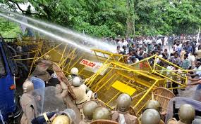 സോളാര് തട്ടിപ്പുകേസിലെ പ്രതികളെ സംരക്ഷിച്ച മുഖ്യമന്ത്രി രാജിവെക്കണമെന്നാവശ്യപ്പെട്ടുകൊണ്ട് ഡി.വൈ.എഫ്.ഐ ജില്ലാ കമ്മിറ്റി നടത്തിയ കലക്ടറേറ്റ് മാര്ച്ചില് സംഘര്ഷമുണ്ടായി.ആക്രമിക്കപ്പെട്ടിട്ടും പൊലീസ് അനങ്ങാതിരുന്നതിനാല് കൂടുതല് പ്രശ്നങ്ങലുണ്ടായില്ല .ഡി.വൈ.എഫ്.ഐ നേതാക്കള് അണികളെ പിന്തിരിപ്പിച്ഛതിനാല് പരിക്കേറ്റ പൊലീസുകാരുടെ എണ്ണം കുറഞ്ഞു.കരിങ്കല്ലുകളും കുറുവടികളും ഉപയോഗിച്ച് ആക്രമിക്കപ്പെട്ട പോലീസുകാരുടെ ഹെല്മറ്റ് ഛിന്നഭിന്നമായി.ആറ് പൊലീസുകാര്ക്കും കല്ളെറിയുന്നതിനിടെ മൂന്ന് ഡി.വൈ.എഫ്.ഐ പ്രവര്ത്തകര്ക്കും പരിക്കേറ്റിട്ടുണ്ട് .ജലപീരങ്കി, ബാരിക്കേഡ്, ടിയര് ഗ്യാസ് തുടങ്ങി സര്വസന്നാഹങ്ങളുമായി നിലയുറപ്പിച്ച പൊലീസിന് മുകളില്നിന്നുള്ള നിര്ദേശപ്രകാരം നിന്നിടത്തുനിന്ന് അനങ്ങാനായില്ല.കലക്ടറേറ്റിന്െറ പ്രധാന ഗേറ്റിനു മുന്നില് അക്രമം നടക്കുന്നതിനിടെ ഒരു സംഘം താഴെ സിവില് സ്റ്റേഷന് ഗേറ്റിനു മുന്നിലും അക്രമം അഴിച്ചുവിട്ടു.ഡി.വൈ.എഫ്.ഐ ജില്ലാ സെക്രട്ടറി എന്. രാജേഷ്, പ്രസിഡന്റ് അശ്വനി ദേവ്, പി.എം. ആതിര, കെ. സിനി, എസ്.കെ. സജേഷ് തുടങ്ങിയവര് മാര്ച്ചിന് നേതൃത്വം നല്കി.