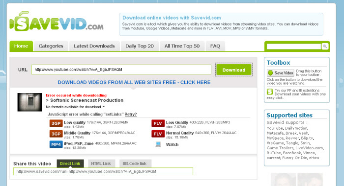 ഈ വെബ്സൈറ്റ് വഴി ഡൌണ്ലോഡ് ചെയ്യണമെങ്കിൽ ജാവ റണ് ടൈം എന്വയോന്മെന്റ് ഇന്സ്റ്റോള് ചെയ്യണം. ഡൌണ്ലോഡ് ചെയ്യേണ്ട യുട്യൂബ് വീഡിയോയുടെ ലിങ്ക് ഈ വെബ്സൈറ്റിലെ savevid.com ഇന്പുട്ട് ബോക്സില് കൊടുത്ത ശേഷം ഡൌണ്ലോഡ് ബട്ടണ് ക്ലിക്ക് ചെയ്യുക. ഈ സെറ്റ് വഴി യുട്യൂബ് അല്ലാതെയുള്ള വീഡിയോ സ്ട്രീമിംഗ് വെബ്സൈറ്റകളിലെ വീഡിയോയും ഡൌണ്ലോഡ് ചെയ്യാവുന്നതാണ്.