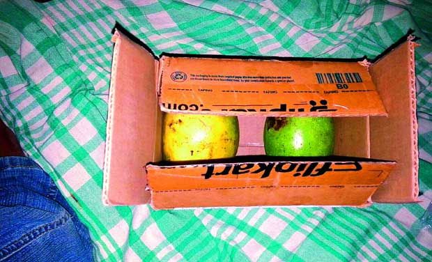 കരീംനഗർ: ഓൺലൈൻ ഷോപ്പിംഗ് വെബ്സൈറ്റായ ഫ്ലിപ്പ്കാർട്ടിലൂടെ സ്മാർട്ട് ഫോൺ ഓർഡർ നൽകിയ യുവാവിന് ലഭിച്ചത് മാങ്ങ..!തെലുങ്കാനയിലെ ജഗ്തിയൽ സ്വദേശിയായ ശ്രുചരൺ എന്ന ഇലക്ട്രിക്കിൽ എഞ്ചിനീയറിനാണ് മൊബൈലിന് പകരം മാങ്ങകള് ലഭിച്ചത്.തനിക്ക് ലഭിച്ച മാങ്ങകള് ചിത്രസഹിതം ഇയാൾ ഫേസ്ബുക്കില് പോസ്റ്റ് ചെയ്തിട്ടുണ്ട്.ഫ്ലിപ്പ്കാർട്ടിന്റെ മേയ് 26നുണ്ടായിരുന്ന മെഗാ സേയിലിന്റെ സമയത്താണ് 8,099 രൂപയുടെ സ്മാർട്ട് ഫോണിന് ശ്രുചരൺ തന്റെ ക്രെഡിറ്റ് കാർഡ് ഉപയോഗിച്ച് ഓർഡർ ചെയ്തത്. എന്നാൽ ജൂൺ 8ന് തനിക്ക് ലഭിച്ച പായ്ക്കറ്റ് പൊട്ടിച്ചു നോക്കിയപ്പോൾ മൊബൈലിന് പകരം രണ്ട് മാങ്ങകള് കണ്ട് യുവാവ് ഞെട്ടി. ഉടൻ തന്നെ ഫ്ലിപ്കാർട്ട് അധികൃതരെ കസ്റ്റമർ കെയറിലൂടെ വിവരം അറിയിച്ചു. 24 മണിക്കൂറിനകം പണം തിരികെ നൽകുമെന്നാണ് അവിടെ നിന്നും അറിയാനായത്.എന്നാൽ പണം തിരികെ ലഭിക്കാതിരുന്നതിനെ തുടർന്ന് ശ്രുചരൺ വീണ്ടും കസ്റ്റമർ കെയറിൽ വിളിച്ചപ്പോൾ ഒരു ദിവസത്തിനകം ഫോൺ അയച്ചു നൽകാമെന്ന് സർവീസ് ടീം പറഞ്ഞു. എന്നാൽ അതും ഉണ്ടായില്ല. തനിക്ക് പണം തിരികെ വേണമെന്ന് ആവശ്യപ്പെട്ട് വീണ്ടും കസ്റ്റമർ കെയറിനെ ബന്ധപ്പെട്ടപ്പോൾ ശ്രുചരണിന്റെ മാറ്റി വാങ്ങാനുള്ള ഓർഡർ റദ്ദായെന്നും അവ തങ്ങളുടെ മാറ്റി വാങ്ങൽ നയങ്ങൾക്കെതിരാണെന്നുമാണ് അറിയാൻ സാധിച്ചത്.സാധനം മാറ്റി നൽകാത്തതിന്റെ പേരിൽ പരാതി പറയാൻ താൻ ഓരോ തവണ ശ്രമിക്കന്പോഴും പല ഉത്തരങ്ങളാണ് ലഭിക്കുന്നതെന്ന് ശ്രുചരൺ പറയുന്നു. ഈ സംഭവത്തെപ്പറ്റി സോഷ്യൽ മീഡിയയിൽ സംസാരിച്ചാൽ തന്റെ ഓർഡർ റദ്ദാക്കുമെന്ന് കന്പനി പ്രതിനിധികൾ അയച്ച മെയിലിൽ പറയുന്നുണ്ടെന്നും യുവാവ് വ്യക്തമാക്കി. ഫ്ലിപ്പ്കാർട്ട് പ്രശ്നം പരിഹരിച്ചില്ലെങ്കിൽ കൺസ്യൂമർ ഫാറത്തിൽ പരാതി നൽകാനാണ് ശ്രുചരണിന്റെ തീരുമാനം.