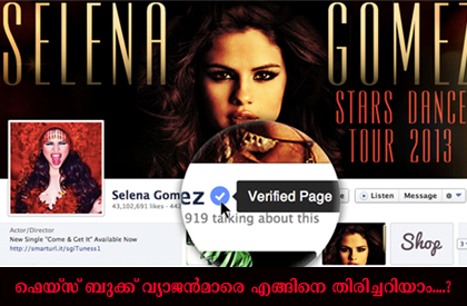 വളരെ പ്രശസ്തരായ വ്യക്തികളുടെ പേരില് വ്യാജ ഫെയ്സ്ബുക്ക് പേജും പ്രൊഫൈലും ഉണ്ടാക്കുന്നത് ഫെയ്സ്ബുക്കിന് എന്നും ഒരു തലവേദനയായിരുന്നു. അതിന് ഒരു അന്ത്യം കുറിച്ചുകൊണ്ട് ഫെയ്സ്ബുക്ക് ഒരു പുതിയ മാറ്റവുമായി വന്നിരിക്കുന്നു. വളരെ പ്രശസ്തരായ വ്യക്തികളുടെയും, പ്രശസ്തമായ ബിസിനസ് സ്ഥാപനങ്ങളുടെയും യഥാര്ത്ഥ ഫെയ്സ്ബുക്ക് പേജും പ്രൊഫൈലും തിരിച്ചറിയാന് ഈ പുതിയ മാറ്റം വഴി കഴിയും.