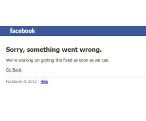 ഫേസ്ബുക്കിന് എന്ത് സംഭവിച്ചു?? ലോകത്തെവിടെയും ഫേസ്ബുക്ക് കിട്ടാത്ത ഒരു അവസ്ഥ ആലോചിച്ചു നോക്കിയിട്ടുണ്ടോ.?? എങ്കിൽ അതാണ് ഇപ്പോൾ ഫേസ്ബുക്കിൽ സംഭവിച്ചത്. മൊബൈലിലും കമ്പ്യൂട്ടറിലും ഒന്നും ഫേസ്ബുക്ക് കിട്ടുന്നില്ലയിരുന്നു. ഇതിനു കാരണം വ്യക്തമായിട്ടില്ലെങ്കിലും ഫേസ്ബുക്കിൽ കയറാൻ ശ്രമിക്കുമ്പോൾ “Sorry, something went wrong. We’re working on getting this fixed as soon as we can. Go Back.” (ഫേസ്ബുക്ക് എന്തോ പ്രശ്നം നേരിട്ടുകൊണ്ടിരിക്കുകയാണെന്നും. അത് ഉടൻ തന്നെ പരിഹരിക്കുന്നതാണെന്നും) എന്ന സന്ദേശമാണ് ലഭിക്കുന്നുണ്ടായത്. എന്നാൽ ‘Go back’ ബട്ടണ് ക്ലിക്ക് ചെയ്യുമ്പോൾ പോലും ഫേസ്ബുക്ക് നേരാം വണ്ണം പ്രതികരിക്കുന്നില്ലയിരുന്നു. മാത്രമല്ല വിവിധ പേജുകളിലെ ഷെയർ ബട്ടണ് പോലും പ്രവർത്തനരഹിതമായിരുന്നു കുറച്ച് സമയത്തേക്ക്. ഫേസ്ബുക്ക് നിലച്ചതോടെ എല്ലാരും ട്വീറ്ററിൽ ‘ഫേസ്ബുക്ക് മരണത്തെ’ കുറിച്ചുള്ള ചർച്ചയും ആരംഭിച്ചു.