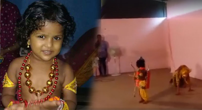 എറണാകുളം പെരുമ്പിള്ളി സ്വദേശികളായ വിജിത്ത്- രാധിക ദമ്പതികളുടെ മകളായ വൈഗ കൃഷ്ണയാണ് സോഷ്യല്‍ വൈറലായ അയ്യപ്പന്റെ വേഷം കെട്ടിയത്. പെരുമ്പിള്ളിയില്‍ ഒരു അംഗനവാടി പരിപാടിക്കിടെ നടന്ന സംഭവം അജിത്ത് പെരുമ്പിള്ളിയാണ് ഈ വീഡിയോ ഫേസ്ബുക്കില്‍ പോസ്റ്റ് ചെയ്തത്.