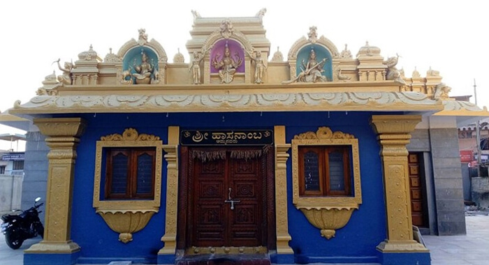 കര്‍ണ്ണാടകയിലെ ഹാസനില്‍ സ്ഥിതി ചെയ്യുന്ന ഹസനാംബ ക്ഷേത്രത്തിലാണ് വിചിത്രമായ ഈ ആചാരമുള്ളത്. ഹസനാംബ ക്ഷേത്രത്തില്‍ വര്‍ഷത്തില്‍ ഒരിക്കല്‍ മാത്രമാണ് ഭക്തര്‍ക്ക് പ്രവേശനമുള്ളത്. ദീപാവലി ആഘോഷങ്ങളുടെ സമയത്ത് ഭക്തര്‍ക്ക് ഇവിടെ പ്രവേശിക്കാന്‍ സാധിക്കും.