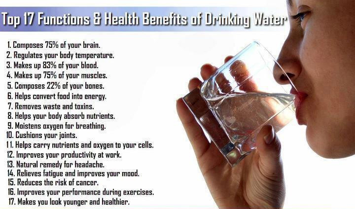 ദിവസം എട്ടു ഗ്ലാസ് വെള്ളം കുടിക്കുകയാണെങ്കില് നിങ്ങള്ക്ക് വന് കുടലിനെ ബാധിക്കുന്ന ക്യാന്സറില് നിന്ന് 45 ശതമാനവും മൂത്രാശയ ക്യാന്സറില് നിന്ന് 50 ശതമാനവും അകന്നുനില്ക്കാനാകുമെന്ന് പഠനങ്ങള് തെളിയിക്കുന്നു. മനുഷ്യ ശരീരത്തിൽ ഭക്ഷണത്തേക്കാൾ വെള്ളത്തിന് പ്രാധാന്യമുണ്ട്. മനുഷ്യ മസ്തിഷ്കം 95 ശതമാനവും രക്തം 82 ശതമാനവും ശ്വാസകോശം 90 ശതമാനവും വെള്ളത്തെ ഉള്ക്കൊള്ളുന്നുണ്ട്.