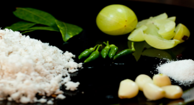 ചെറിയ കഷ്ണം ഇഞ്ചിയും ഈ പ്രത്യേക ചമ്മന്തിയില് ചേര്ക്കുന്നതുണ്ട്. ഇഞ്ചിയും ആവശ്യമെങ്കില് ഒരല്ലി വെളുത്തുളളിയും ചേര്ക്കാം. ഇനി ഇഞ്ചിയും വെളുത്തുള്ളിയും വേണ്ടെങ്കില് തന്നെ മറ്റു 4 ചേരുവകള്, അതായത് പച്ചനെല്ലിക്ക, കാന്താരി മുളക്, ചുവന്നുള്ളി, കറിവേപ്പില തുടങ്ങിയവ വേണം.