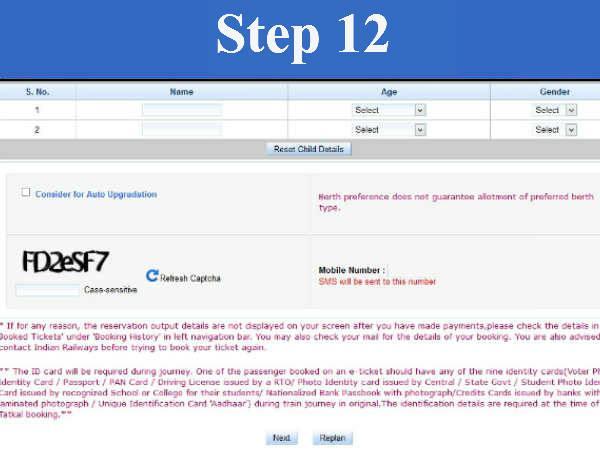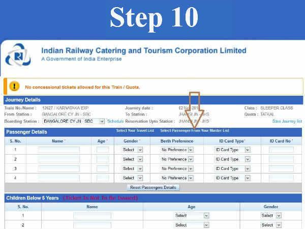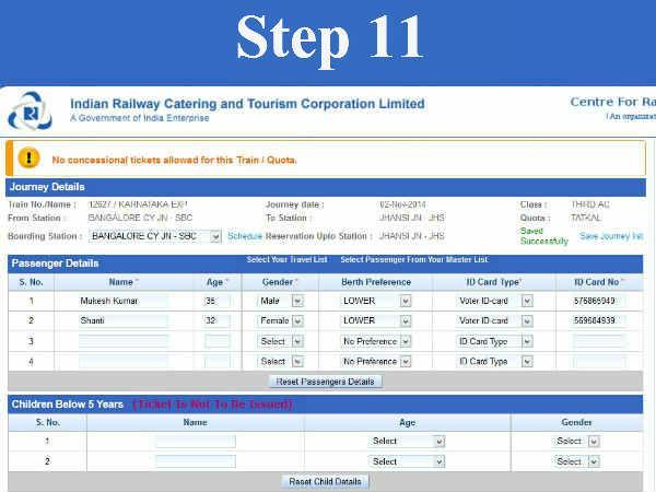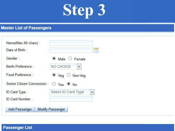 ട്രെയിനിൻറെ വിവരങ്ങളും യാത്ര പോകേണ്ട സ്ഥലവും മറ്റ് വിവരങ്ങളുമാണ് ഇവിടെ നല്‍കേണ്ടത്.