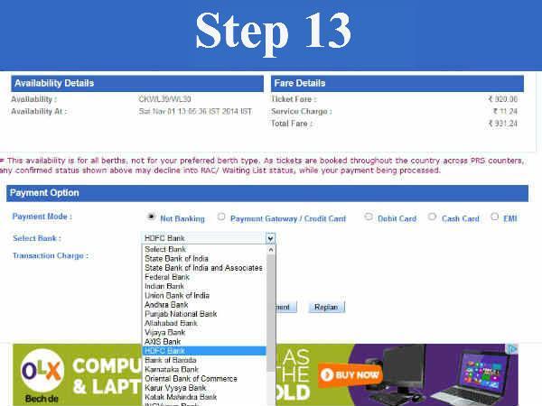 ബാങ്ക് ഡീറ്റയില്‍സ് കൊടുത്ത് പെയ്മെൻറ് ഘട്ടം പൂര്‍ത്തിയാകുന്നതോടെ ടിക്കറ്റ് ബുക്ക്ഡ് ആകുന്നതാണ്.