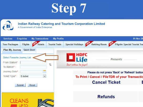പത്ത് മണിയാകുമ്പോൾ തത്കാല്‍ ബുക്കിംഗ് തുടങ്ങുന്ന നേരം നോക്കി വീണ്ടും ലോഗിന്‍ ചെയ്യുക.