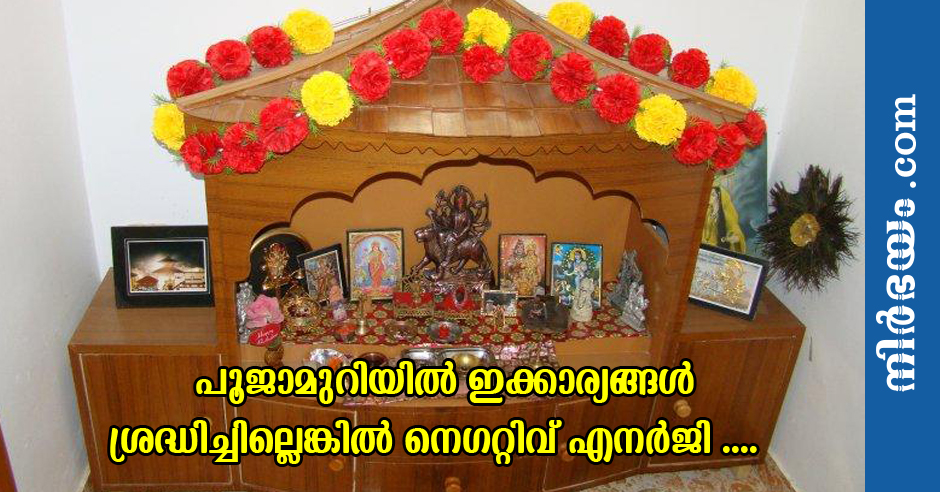 വീടായാൽ ഒരു പൂജാമുറി നിർബന്ധമാണ്. വലിയ വീടായാലും ചെറിയൊരു വീടായാലും ഭക്തരായിട്ടുള്ളവര്‍ പണ്ടുമുതലേ വീട്ടിൽ ഒരു പൂജാമുറി ഒരുക്കിയിട്ടുണ്ടാകും. ഒരു വീട്ടിലെ പൂജാമുറിയാണ് പലപ്പോഴും ആ വീട്ടിലെ ഐശ്വര്യത്തിനും സന്തോഷത്തിനും കാരണമാകുന്നത്. പൂജാമുറി കൃത്യമായി സംരക്ഷിക്കാന്‍ അറിയാത്തത് പല വിധത്തിലുള്ള ദോഷങ്ങൾക്കും വഴിതെളിയിക്കും. പൂജാമുറിയില്‍ ശ്രദ്ധിക്കേണ്ട ചില കാര്യങ്ങളുണ്ട്. ഇവ ശ്രദ്ധിച്ചില്ലെങ്കിൽ അവിടെ നെഗറ്റിവ് എനർജി നിറയാൻ ഇടവരും.