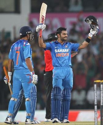 ശിഖര് ധവാൻറെയും (100) രോഹിത് ശര്മയുടെയും (79) ഓപണിങ് ബാറ്റിങ്ങും മധ്യനിരയില് 66 പന്തില് 115 റണ്സുമായി വിരാട് കോഹ്ലി പുറത്താവാതെ തകര്ത്താടുകയും ചെയ്തതോടെ ഇന്ത്യയെ തടുക്കാന് ഓസീസിനൻറെ ആവനാഴിയില് ഒന്നുമില്ലാതായി.61 പന്തില് സെഞ്ച്വറി തികച്ച കോഹ്ലി ഒരു ഇന്ത്യക്കാരൻറെ ഏറ്റവും വേഗമേറിയ മൂന്നാമത്തെ ശതകത്തിനുടമയായി.രണ്ടാഴ്ചമുമ്പ് ജയ്പൂരില് 52 പന്തിലെ സെഞ്ച്വറി പ്രകടനത്തെ വെല്ലുന്ന ക്ളാസിക് ഇന്നിങ്സുമായാണ് കോഹ്ലി ഇന്ത്യന് ജയത്തിന് അടിത്തറ പാകിയത്.66 പന്ത് നേരിട്ട് 18 ബൗണ്ടറിയും ഒരു സിക്സറും പറത്തിയ മാസ്മരിക ഇന്നിങ്സുമായി കോഹ്ലി തന്നെ കളിയിലെ താരമായി.അവസാന ഓവറുകളില് വിജയത്തിലേക്ക് ഫിനിഷ് ചെയ്യാനുള്ള ജോലി എം.എസ്.ധോണി (23 പന്തില് 25) നിര്വഹിച്ചപ്പോള് ആതിഥേയ തിരക്കഥ പൂര്ണവുമായി.സുരേഷ് റെയ്ന (16), യുവരാജ് സിങ് (0) എന്നിവരാണ് ഇന്ത്യക്ക് നഷ്ടമായ മറ്റു വിക്കറ്റുകള്.