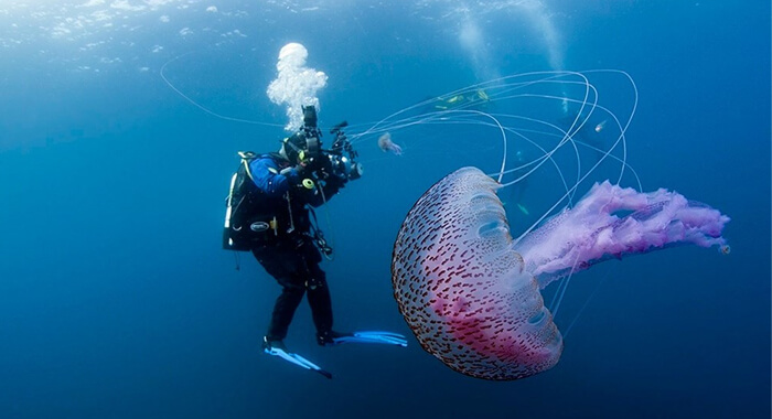 ഇളംനീല നിറത്തിലുള്ള ഇവയ്ക്ക് 10 കിലോഗ്രാം വരെ ഭാരമുണ്ടാകും. നടുഭാഗത്തിന് 90 സെ.മീ വരെ വ്യാസവും. ശരീരത്തില് നാരു പോലുള്ള ഭാഗങ്ങളില് നിറയെ വിഷം ഒളിപ്പിച്ചു വച്ചിരിക്കുന്നവയാണ് ഇക്കൂട്ടര്. ദേഹത്തൊരു കുത്തുകിട്ടിയാല് ആരും വേദന കൊണ്ട് പുളഞ്ഞു പോകും. നീന്തലിനിടെ ഈ ജെല്ലിഫിഷുകളുടെ കൂട്ട ആക്രമണത്തിനിരയായാല് മരണം വരെ സംഭവിക്കാം.