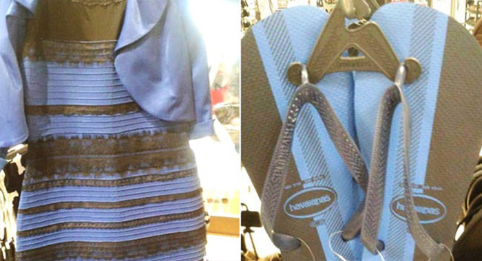 ഒരു ഫ്ലിപ്പ് ഫ്ലോപ്പ് ചെരിപ്പിന്റെ നിറത്തെച്ചൊല്ലിയാണ് ഇന്റര്നെറ്റ് തര്ക്കിക്കുന്നത്. ചെരിപ്പ് വൈറ്റ്-ഗോള്ഡ് ആണെന്ന് ഒരു കൂട്ടര്, ബ്ലൂ ബ്ലാക്ക് എന്ന മറ്റു ചിലര്. ഇതു രണ്ടുമല്ല, ഗ്രേയും വൈറ്റുമാണെന്ന് മൂന്നാമതൊരു കൂട്ടര്. പോസിറ്റിവിഡമിന്റെ ട്വിറ്റര് പേജിലാണ് ഈ ചെരിപ്പിന്റെ ചിത്രം ആദ്യം പ്രത്യക്ഷപ്പെട്ടത്. അന്നുമുതല് ആരംഭിച്ച തര്ക്കമാണ്. ഇതുവരെ ഒരു തീരുമാനത്തിലെത്തിയിട്ടില്ല.