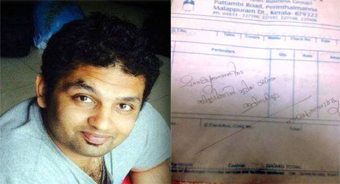 2013 ല് നടന്ന ഈ സംഭവം അഖിലേഷ് മൂന്ന് വര്ഷം കഴിഞ്ഞാണ് ഫേസ് ബുക്കില് പോസ്റ്റ് ചെയ്തത്. താന് നിധിപോലെ സൂക്ഷിച്ചിരുന്ന ഒറിജിനല് ബില്ല് വീട് മാറുന്നതിനിടയില് നഷ്ടമായിരുന്നുവെന്നും ഗൂഗിള് സെര്ച്ചിലൂടെ ലഭിച്ച ഹോട്ടലിന്റെ ബില്ലില് ക്യാഷര് എഴുതിത്തന്ന വാചകം താന് അതേപടി പകര്ത്തുകയായിരുന്നുവെന്നും അഖിലേഷ് വ്യക്തമാക്കി. തന്റെ ബാര് ഹോട്ടലിന് ലൈസന്സ് നഷ്ടപ്പെട്ടപ്പോള് ഏതാനും ജീവനക്കാരെ പിരിച്ചുവിടേണ്ടി വന്നിരുന്നു. ഇതില് ആരെങ്കിലുമായിരിക്കും അന്ന് ക്യാഷ് കൗണ്ടറില് ഉണ്ടായിരുന്നതെന്നും ഹോട്ടലുടമ പറഞ്ഞു.