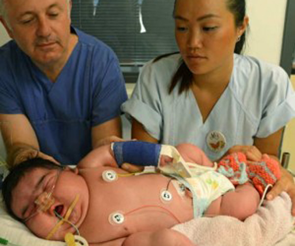 ജർമ്മനി : ലോകത്തിലെ തന്നെ ഏറ്റവും ഭാരമുള്ള നവജാത ശിശുവിന് ജർമ്മനിയിലെ ഒരു സ്ത്രീ ജന്മം കൊടുത്തു.കുഞ്ഞിന്റെ ഭാരം 6.10 കിലോഗ്രാമും നീളം 23 ഇഞ്ചുമാണ്.ജസ്ലീൻ എന്നാണ് കുഞ്ഞിനു പേര് നല്കിയിട്ടുള്ളത് . അമ്മയും കുഞ്ഞും സുഗമായിരിക്കുനു എന്ന് ഡോക്ടർമാർ അറിയിച്ചു.അമ്മയുടെ പ്രേമഹമാണ് ഇതിനു കാരണം.