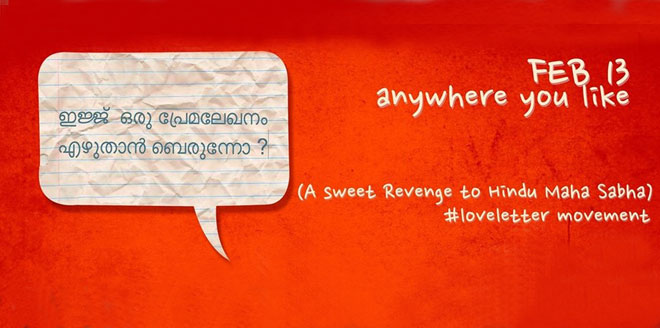 തിരുവന്തപുരം :പ്രണയദിനം ആഘോഷിക്കുന്നവരെ പിടിച്ച് വിവാഹം കഴിപ്പിക്കാൻ നടക്കുന്ന ഹിന്ദുമഹാസഭക്കെതിരെ പ്രതികാരവുമായി സോഷ്യല് മീഡിയരംഗത്ത് . ‘ഇജ്ജ് ഒരു പ്രേമ ലേഖനം എഴുതാന് ബെരുന്നോ’ എന്ന പേരിലാണ് സോഷ്യൽമീഡിയ സമരത്തിനിറങ്ങുന്നത്. പ്രണയിക്കാനുള്ള അവകാശത്തിന് വേണ്ടിയാണ് സമരം. ‘ഇജ്ജ് ഒരു പ്രേമ ലേഖനം എഴുതാന് ബെരുന്നോ’ എന്ന പേരില് ഫേസ്ബുക്ക് പേജും ആരംഭിച്ചിട്ടുണ്ട്.ഫെബ്രുവരി 13 രാത്രി പന്ത്രണ്ട് മണി മുതല് പിറ്റേന്ന് രാത്രി പന്ത്രണ്ട് മണിവരെ ഫേസ്ബുക്ക് വാളുകള് പ്രണയ ലേഖനം കൊണ്ട് നിറയ്ക്കമെന്നാണ് ഓണ്ലൈന് കൂട്ടായ്മ ആവശ്യപ്പെടുന്നത്.#LoveLetterMovement എന്ന ഹാഷ്ടാഗും സമരത്തിന്റെ ഭാഗമായി സോഷ്യൽ മീഡിയയിൽ പ്രചരിക്കുന്നുണ്ട്. പ്രണയദിനത്തില് ഫേസ്ബുക്കില് സ്നേഹ സന്ദേശം കുറിയ്ക്കുന്നവരെ പിടിച്ച് കെട്ടിക്കുമെന്നും പൊതു സ്ഥലത്ത് പനിനീര് പൂവുമായി നില്ക്കുന്ന യുവാക്കള്ക്ക് കടുത്ത ശിക്ഷ നല്കുമെന്നും ഹിന്ദുമഹാസഭ കഴിഞ്ഞ ദിവസം പറഞ്ഞിരുന്നു. ഇതിനെതിരെയുള്ള പ്രതിഷേധമായാണ് പുതിയ സൈബര് സമരം.