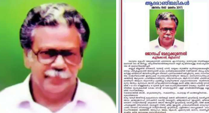 തിരുവനന്തപുരത്തെ ആര്സിസിയില് ചികിത്സക്ക് പോകുകയാണെന്നും പറഞ്ഞ് നാല് ദിവസങ്ങള്ക്ക് മുമ്പാണ് ജോസഫ് വീട്ടില് നിന്നും ഇറങ്ങിയത്. തുടര്ന്ന് പ്രമുഖ പത്രങ്ങളിലെല്ലാം ഇദ്ദേഹം തന്നെ സ്വന്തം ചരമ വാര്ത്ത പ്രസിദ്ധീകരിക്കാന് കൊടുക്കുകയായിരുന്നു. അല്പ്പം പഴയ ഫോട്ടോ കൊടുത്തതിനാല് ആരും തിരിച്ചറിയുകയും ചെയ്തില്ല. സംസ്ക്കാര ചടങ്ങുകളെക്കുറിച്ചും ബന്ധുക്കളെക്കുറിച്ചുമെല്ലാം ഇയാള് വിശദവിവരങ്ങള് നല്കിയാണ് പരസ്യം ചെയ്തിരിക്കുന്നത്.