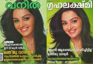 തിരുവനന്തപുരം : ജൂണ് മാസത്തെ മനോരമയുടെ വനിതയ്ക്കും മാതൃഭൂമിയുടെ ഗൃഹലക്ഷ്മിക്കും ഒരേ മുഖചിത്രം. മലയാളികളുടെ പ്രിയ താരമായ മഞ്ജു വാര്യരുടെ ഒരേ പോസിലുള്ള ഫോട്ടോയാണ് രണ്ട് പ്രസിദ്ധീകരണങ്ങളും ഒരേ സമയം പുറത്തിറക്കിയിരിക്കുന്നത്. വനിത പുറത്തിറക്കിയത് മെയ് 28 നും ഗൃഹലക്ഷ്മി പുറത്തിറങ്ങിയത് മെയ് 29നുമാണ്. ധാത്രിയുടെ പരസ്യത്തിൽ മഞ്ജു വാര്യർ അഭിനയിച്ചിട്ടുള്ള ഫോട്ടോയാണ് രണ്ടു പ്രസിദ്ദീകരണങ്ങളും കവർ ചിത്രമായി ഉപയോഗിച്ചിരിക്കുന്നത്.മാത്രമല്ല വനിതയുടെയും ഗൃഹലക്ഷ്മിയുടെയും കവർ സ്റ്റോറി മഞ്ജു വാര്യരുടെ അഭിമുഖമാണ്.രണ്ടിലും മഞ്ജു പറഞ്ഞിട്ടുള്ളതും ഒരേ കാര്യങ്ങളുമാണ്. ഇതിൽ എന്തെങ്കിലും ബിസിനസ്സ് പദ്ധതി ഉണ്ടോ എന്നാണ് നാട്ടുകാരുടെ സംശയം. എന്നാൽ മാതൃഭൂമിയും മനോരമയും ചിത്രങ്ങൾക്ക് ക്രെഡിറ്റും കൊടുത്തിട്ടുണ്ടെന്നാണ് റിപ്പോർട്ടുകൾ സൂചിപ്പിക്കുന്നത്.വലിയ പ്രാധാന്യമുള്ള വാർത്തകൾ വരുമ്പോൾ പത്രങ്ങളിൽ ചില ചിത്രങ്ങങ്ങളും തലക്കെട്ടും ഒരേ പോലെ വരാറുണ്ട്.എന്നാൽ മാഗസീനുകളിൽ ഇങ്ങനെ സംഭവിക്കുന്നത് അപൂർവമാണ്.