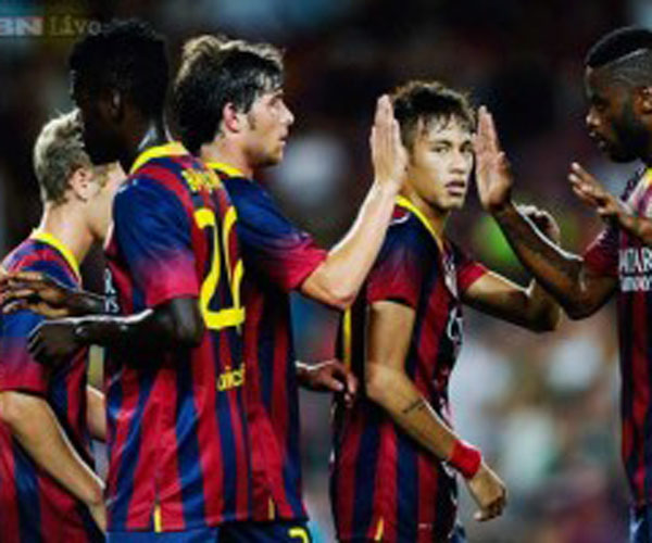 ബാര്സിലോന :മെസിയും നെയ്മറും ചേര്ന്നപ്പോള് സാന്റോസിനെതിരെ ബാഴ്സക്ക് എട്ട് ഗോളിന്റെ വിജയം.എട്ടാം മിനിറ്റില് ലയണല് മെസ്സിയാണ് ഗോൾ മഴയ്ക്ക് തുടക്കമിട്ടത്.12ം മിനിറ്റിൽ സാന്റോസ് താരം ലിയോയുടെ സെൽഫ് ഗോള് ബാഴ്സയുടെ ലീഡ് ഉയർത്തി.22ം മിനിറ്റില് അലക്സി സാഞ്ചേയ്സും, 30ം മിനിറ്റില് പെട്രോയും ലീഡ് ഉയര്ത്തി. 52ം മിനിറ്റിലും 58ം മിനിറ്റിലും ഫാബ്റിഗാസ് നേടിയ രണ്ട് ഗോളിന്റെയും പിന്നില് നെയ്മറിന്റെ ചുവടുകളായിരുന്നു. 75ം മിനിറ്റില് അഡ്രിയാനോ 88ം മിനിറ്റില് ഡോണ്ഗോ എന്നിവരാണ് ബാഴ്സക്ക് വേണ്ടി ഗോളുകള് നേടിയത്.നെയ്മറുടെയും മെസ്സിയുടെയും പ്രതിഭ ഒത്തുചേര്ന്നപ്പോള് സാന്റോസിന്റെ പ്രതിരോധം അപ്രത്യക്ഷമായി .നെയ്മര് തന്റെ മുന് ക്ലബായ സാന്റോസിനെതിരെ ഇറങ്ങിയത് രണ്ടാം പകുതിയില് പെട്രോക്ക് പകരക്കാരനായിട്ടാണ്.