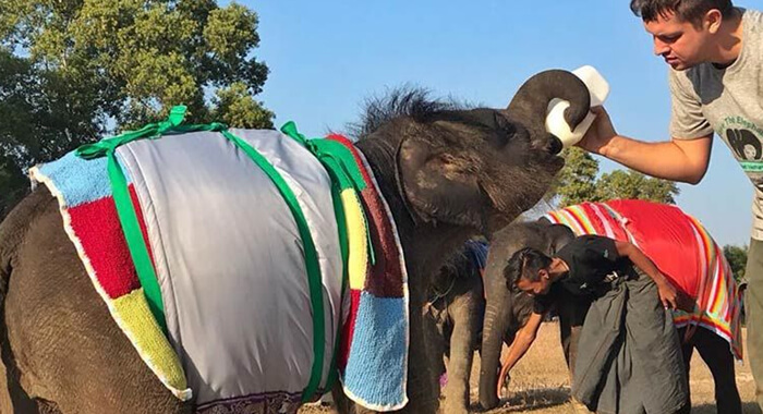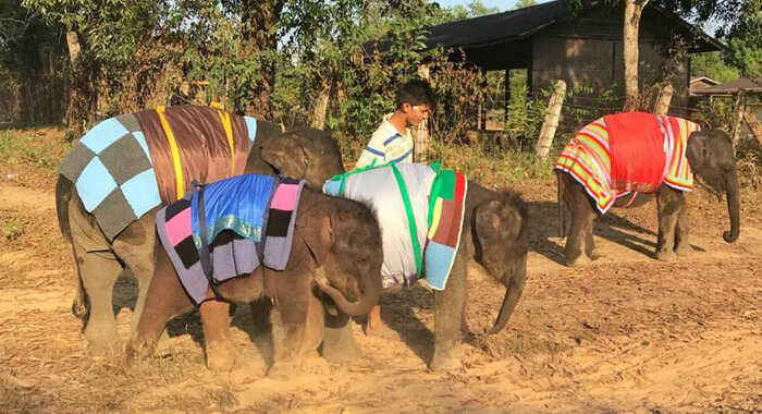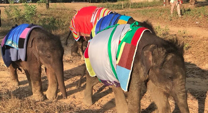 പ്രദേശത്തെ താപനില ചൈനയില് നിന്നുള്ള കാറ്റെത്തിയതോടെ ശരാശരി 21 ഡിഗ്രിയില് നിന്ന് 8 ഡിഗ്രി സെല്ഷ്യസായി താഴ്ന്നു. ഇതോടെ ആനക്കുട്ടികളെ കമ്പിളി പുതപ്പിച്ചാണ് തണുപ്പില് നിന്ന് രക്ഷിച്ചു നിര്ത്തിയത്. വെറുതെ പുതപ്പിച്ചിട്ട് കാര്യമില്ലാത്തതിനാല് കയറു കൊണ്ട് അനക്കുട്ടികളുടെ ദേഹത്ത് കമ്പിളിപ്പുതപ്പ് കെട്ടിവെയ്ക്കുകയായിരുന്നു.