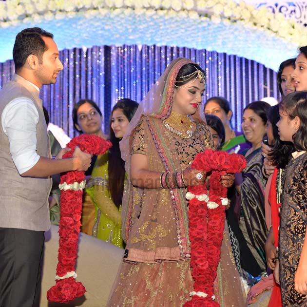 അടുത്ത സുഹൃത്തുക്കളും കുടുംബസുഹൃത്തുക്കളും ബന്ധുക്കളും മാത്രമാണ് നിക്കാഹ് ചടങ്ങിൽ പങ്കെടുത്തത്. തുടർന്ന് നടന്ന വിരുന്നിൽ സിനിമാലോകത്തെ പ്രശസ്തർ വധൂവരന്മാർക്ക് ആശംസകളേകാൻ എത്തി. മുഖ്യമന്ത്രി ഉമ്മൻ ചാണ്ടി, നടൻ കൃഷ്ണകുമാർ, സംവിധായകൻ ഷാജി കൈലാസ്, ഭാര്യ ചിത്ര തുടങ്ങിയവർ ആദ്യം തന്നെ എത്തിയിരുന്നു. കൺവെൻഷൻ സെന്ററിനു പുറത്ത് ഫഹദിന്റെയും നസ്രിയയുടെയും ആരാധകരുടെ തിരക്കായിരുന്നു. തിരക്ക് നിയന്ത്രിക്കാൻ പലപ്പോഴും പൊലീസിന് ഇടപെടേണ്ടി വന്നു. ദേശീയ പാതയിൽ മണിക്കൂറുകളോളം നീണ്ട ഗതാഗത കുരുക്ക് ഉണ്ടായി. വേദിക്ക് പുറത്ത് കനത്ത സുരക്ഷയായിരുന്നു പൊലീസ് ഒരുക്കിയിരുന്നത്. നേരിട്ടു ക്ഷണം ലഭിച്ചവരെ മാത്രമേ അകത്തേക്ക് കടത്തി വിട്ടുള്ളൂ. പാസ് കാണിച്ചാൽ മാത്രമായിരുന്നു അകത്തേക്ക് പ്രവേശനം. ചടങ്ങിൽ മാദ്ധ്യമങ്ങൾക്കും പ്രവേശനമുണ്ടായിരുന്നില്ല. ദൃശ്യമാദ്ധ്യമപ്രവർത്തകർക്കുള്ള വീഡിയോ ദൃശ്യങ്ങൾ അപ്പപ്പോൾ നൽകാൻ സംവിധാനം ഏർപ്പെടുത്തിയിട്ടുണ്ടായിരുന്നു. അവർ ഹാളിനുള്ളിലേക്കു കടക്കുന്നത് നിക്കാഹിനും സൽക്കാരത്തിലും പങ്കെടുക്കാനെത്തുന്നവർക്ക് അസൗകര്യം സൃഷ്ടിക്കുമെന്നതിനാൽ ക്യാമറ അകത്തേക്കു കടത്തിവിടില്ലെന്നും ഇതൊരു നിയന്ത്രണമല്ല, അഭ്യർഥനയാണ്. മൊബൈൽ ഫോണിൽ ചിത്രങ്ങളെടുക്കാൻ ഒരു കാരണവശാലും അനുവദിക്കില്ലെന്നും ഫാസിൽ കഴിഞ്ഞ ദിവസം തന്നെ അറിയിച്ചിരുന്നു. സെലിബ്രിറ്റി കല്യാണമായതിൽ തന്നെ ജനങ്ങൾ സഹകരിക്കണമെന്ന അഭ്യർത്ഥന ഫഹദും നടത്തിയിരുന്നു.ഒരു ഇടവേളയ്ക്കു ശേഷം വലിയ തിരിച്ചു വരവ് നടത്തിയ ഫഹദ് ഫാസിലും വളരെ കുറച്ച് ചിത്രങ്ങളിലൂടെ നിരവധി ആരാധകരെ സ്വന്തമാക്കിയ നസ്റിയ നസിമും പ്രണയത്തിനൊടുവില് വീട്ടുകാരുടെ സമ്മതതോടെയാണ് വിവാഹിതരായത്. വിവാഹത്തിന് മുന്നോടിയായുള്ള മൈലാഞ്ചിക്കല്യാണം ഇന്നലെ നടന്നിരുന്നു.കോവളം ഉദയസമുദ്രയിൽ നടന്ന മൈലാഞ്ചിക്കല്യാണത്തിനു വധുവിന്റെ അടുത്ത ബന്ധുക്കളും സുഹൃത്തുക്കളും മാത്രമാണു പങ്കെടുത്തത്.എറണാകുളം ആസ്ഥാനമാക്കിയ ഇവന്റ് മാനേജ്മന്റ് കമ്പനിയാണ് വിവാഹച്ചടങ്ങ് ഒരുക്കുന്നത്. ‘മാംഗല്യം ദ ഡ്രീം വെഡിങ് എന്ന സീരീസിൽ ഇവർ തന്നെ ഫഹദ് നസ്റിയ വെഡിങ് പോസ്റ്ററുകളും തയറാക്കിയിരുന്നു. നസ്രിയയുടെ വീട്ടുകാരാണ് വിവാഹച്ചടങ്ങുകളുടെ ചുമതല പൂർണമായും നടത്തുന്നത്. ഓഗസ്റ്റ് 25ന് ആലപ്പുഴയിൽ സിനിമാരംഗത്തുള്ളവർക്കായി പ്രത്യേകം റിസപ്ഷനുണ്ടാകും.