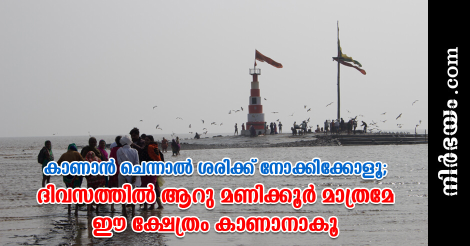 ഇവിടത്തെ തീരത്തു നിന്നും ഏകദേശം ഒന്നരകിലോമീറ്ററോളം അകലെ കടലിനുള്ളില് സ്ഥിതി ചെയ്യുന്ന ഈ ക്ഷേത്രം ദിവസത്തില് ആറു മണിക്കൂര് മാത്രമേ പുറത്ത് കാണാനാവൂ. ദിവസത്തില് ആറു മണിക്കൂറോളം സമയം മാത്രമേ ഈ അത്ഭുത ക്ഷേത്രം പുറത്തു കാണാനും സന്ദര്ശിക്കാനും കഴിയൂ എന്നതാണ് ഇതിന്റെ പ്രത്യേകതയും.