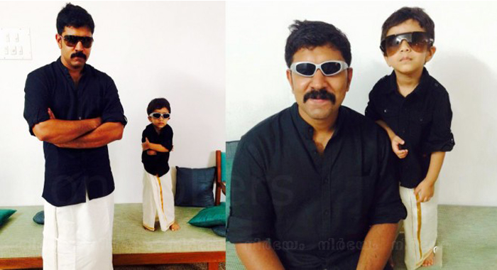പ്രേമം ലുക്കില് നിവിന് പോളിയുടേയും മകന് ദാവീദിന്റേയും ഓണാഘോഷം.മുണ്ടും ബ്ലാക്ക് ഷര്ട്ടും ധരിച്ച് കൈകള് കെട്ടി കറുത്ത കൂളിങ്ങ് ഗ്ലാസും വെച്ചാണ് ഇരുവരും ചിത്രത്തില്. ഓണത്തോടനുബന്ധിച്ച് എടുത്ത ഈ ചിത്രം തന്റെ ഫെയ്സ്ബുക്ക് അക്കൗണ്ടിലൂടെ നിവിന് പോളിയാണ് പുറത്തുവിട്ടത്.ചിത്രം പോസ്റ്റ് ചെയ്ത് മണിക്കൂറിനുള്ളില് തന്നെ 2 ലക്ഷത്തിനടുത്ത് ലൈക്കുകളും 5000ഓളം ഷെയറുകളും നേടിയിട്ടുണ്ട്. പ്രേമം പുറത്തിറങ്ങിയതിന് ശേഷം കറുത്ത ഷര്ട്ടും വെള്ള മുണ്ടും യുവാക്കള്ക്കിടയില് ഹരമായിരുന്നു. സംസ്ഥാനത്തെ കോളേജുകളിലും ഓണാഘോഷം പ്രേമം ഹാങ്ഓവറിലായിരുന്നു.