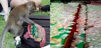 ആഗ്ര:മീന്മഴ, ചിലന്തിമഴ, ആസിഡ്മഴ എന്നിങ്ങനെയുള്ള വിചിത്രങ്ങളായ മഴയെകുറിച്ചുള്ള കൗതുകകരമായ വാർത്തകൾ നമ്മൾ കേട്ടിട്ടുണ്ട്.എന്നാൽ നോട്ടുമഴയെ കുറിച്ച് ഒരു പക്ഷെ ആരും തന്നെ കേട്ടുകാണില്ല.എന്നാൽ വൃന്ദാവന് ക്ഷേത്രപരിസരത്ത് ‘ നോട്ടുമഴ ‘ പെയ്തു, അതും 500 രൂപ നോട്ടുകളുടെ!മറ്റു വിചിത്ര മഴകളെ പോലെ ഇതൊരു പ്രതിഭാസത്തിന്റെ ഭാഗമല്ലായിരുന്നു. ഒരു കുരങ്ങനാണ് ഇതിനു പിന്നില് പ്രവര്ത്തിച്ചത്. മുംബൈയിലെ ബോറിവലിയില് നിന്ന് എത്തിയ ഹേമവതി സോങ്കര് എന്ന ഭക്തയുടെ കൈയിലിരുന്ന ബാഗ് തട്ടിയെടുത്ത കുരങ്ങ് ഒരു മരത്തിനു മുകളില് കയറിയിരുന്ന് അത് തുറന്ന് നോട്ടുകള് വിതറുകയായിരുന്നു.ശനിയാഴ്ച്ച ഉച്ചതിരിഞ്ഞ് കുടുംബസഹിതമാണ് ഹേമാവതി ബാങ്കെ ബിഹാരി ക്ഷേത്രം സന്ദര്ശിക്കാനെത്തിയത്. ആ സമയത്ത് ക്ഷേത്രം അടച്ചിട്ടിരിക്കുകയായിരുന്നു. ഇതേതുടര്ന്ന് ഹേമാവതിയുടം കുടുംബവും പരിസരത്തുള്ള കടകളില് സാധനങ്ങള് വാങ്ങാന് കയറി. ഈ സമയത്താണ് ഒരു കുരങ്ങന് ബാഗ് തട്ടിയെടുത്ത് മരത്തിനു മുകളിലേക്ക് കയറിയത്. ബാഗില് 500 രൂപയുടെ മൂന്ന് കെട്ടുകളായി 1.5 ലക്ഷം രൂപയുണ്ടായിരുന്നു. മരത്തിന് മുകളില് കയറിയ കുരങ്ങന് നോട്ടുകള് വിതറാന് ആരംഭിച്ചു.നോട്ടുകള് മഴയായ് പെയ്യുന്നത് കണ്ട് സമീപത്തുളളവരെല്ലാം ചേര്ന്ന് കിട്ടാവുന്നിടത്തോളം പെറുക്കിയെടുത്തു. കുരങ്ങിന്റെ ശ്രദ്ധമാറ്റാന് എന്തെങ്കിലും ഭക്ഷണം എറിഞ്ഞുകൊടുക്കാന് വേണ്ടി ഹേമവതിയും കുടുംബവും ശ്രമിച്ചെങ്കിലും അതു സാധിച്ചില്ല. ഇതിനിടെ മറ്റുളളവര്ക്കൊപ്പം നോട്ടു പെറുക്കാന് പോയ അവരുടെ മകളുടെ മൊബൈല് ഫോണും ആരോ കവര്ന്നു.