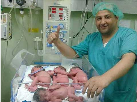 ഇസ്രായേലിൻറെ ക്രൂര ആക്രമണങ്ങൾക്കിരയായിക്കൊണ്ടിരിക്കുന്ന ഗാസയിൽ യുവതിക്ക് ഒറ്റ പ്രസവത്തിൽ നാല് കുട്ടികൾ പിറന്നു. ഈപ്ജിത് അതിർത്തിയിലുള്ള റാഫയിലെ യുവതിക്കാണ് ഈ അപൂർവ സൗഭാഗ്യം വന്നിരിക്കുന്നത്. മൂന്ന് ആണ്കുട്ടികളും ഒരു പെണ്കുട്ടിയുമാണ് യുവതിക്ക് പിറന്നത്. ഇവരുടെ ആരോഗ്യ നില തൃപ്തികരമാണെന്ന് ഡോക്ടർമാർ അറിയിച്ചു. കുഞ്ഞുങ്ങളുടെ ഫോട്ടോ ഗാസയിലെ ഷിഫാ ആശുപത്രിയിലെ ഡോക്ടർ ബാസൽ അബുവാർദ ട്വിറ്ററിൽ പോസ്റ്റ് ചെയ്തിട്ടുണ്ട്. ഇസ്രായേലിൻറെ ആക്രമണത്തിൽ പരിക്കേറ്റ് കൂടുതൽ ആളുകളും ചികിത്സയ്ക്കെത്തുന്നത് ഷിഫ ആശുപത്രിയിലാണ്. ആക്രമണത്തിൽ 249 കുട്ടികൾ ഇതുവരെ കൊല്ലപ്പെട്ടിട്ടുണ്ടെന്നാണ് കണക്കുകൾ സൂചിപ്പിക്കുന്നത്.