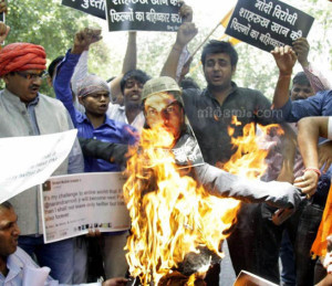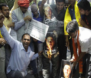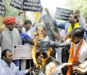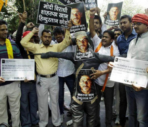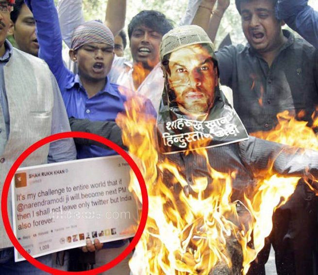 ന്യുഡൽഹി : ഷാരൂഖ് നാടു വിട്ടില്ലെന്നു ആരോപിച്ച് ഹിന്ദു സേനാ സമിതി ഷാരുഖിന്റെ പോസ്റ്റർ കത്തിച്ച് പ്രതിഷേധിച്ചു. നരേന്ദ്ര മോഡി പ്രധാന മന്ത്രിയായാൽ നാട് വിട്ടു പോകുമെന്ന് ഷാരൂഖ് ഖാൻ പറഞ്ഞിരുന്നു എന്ന് ആരോപിച്ച് ഹിന്ദു സമിതിക്കാർ ഡൽഹിയിൽ ഷാരൂഖ് ഖാൻന്റെ പോസ്റ്റർ കത്തിച്ച് പ്രതിഷേധിച്ചു. നരേന്ദ്ര മോഡി പ്രധാന മന്ത്രി ആയേക്കുമെന്ന പറഞ്ഞു നടന്ന വേളയിൽ ഷാരൂഖ് ഖാൻ തന്റെ ട്വീറ്ററിലൂടെ ‘നരേന്ദ്ര മോഡി പ്രധാന മന്ത്രി ആയാൽ താൻ ഇന്ത്യ വിട്ടു പോകുമെന്ന് വെല്ലുവിളിക്കുന്നു’ എന്ന് ട്വീറ്റ് ചെയ്തു എന്നാണ് ജനം ആരോപിക്കുന്നത്. 26 ന് നരേന്ദ്ര മോഡി പ്രധാന മന്ത്രി ആയതു മുതൽ ഷാരൂഖ് ഖാൻ നാട് വിടണം എന്ന ആവശ്യം സോഷ്യൽ മീഡിയയിൽ എങ്ങും പ്രചരിച്ചു കൊണ്ടിരിക്കുകയാണ്. എന്നാൽ ഷാരൂഖ് ഖാൻ അങ്ങനെ ഒരിക്കലും പറഞ്ഞിട്ടില്ല. ഇതു വ്യക്തമാക്കി കൊണ്ട് കമാൽ ആർ ഖാൻ ട്വീറ്റ് ചെയ്തിരുന്നു. താൻ ആണ് മോഡി പ്രധാന മന്ത്രി ആയാൽ നാട് വിട്ടു പോകും എന്ന് പറഞ്ഞത്, ഷാരൂഖ് അല്ല എന്ന് കമാൽ ട്വീറ്റ് ചെയ്തിരുന്നു. തന്നെ അറിയപെടുന്നത് കെ.ആർ.കെ എന്നും ഷാരൂഖ് അറിയപ്പെടുന്നത് എസ്.ആർ.കെ എന്നും ആണ്. അതിനാൽ ആകും അത്തരമൊരു തെറ്റിദ്ധാരണ വന്നതെന്നും കമാൽ ട്വീറ്റ് ചെയ്തിരുന്നു. മോഡി പ്രധാന മന്ത്രി ആയ ശേഷം കമാൽ ആർ ഖാൻ ഇന്ത്യ വിട്ടു പോവുകയും ചെയ്തു. എന്നിട്ടും കാര്യം മനസിലാക്കാത്ത ജനം രോശാകുലരായി ഷാരുഖിനെ വേട്ടയാടികൊണ്ടിരിക്കുകയാണ്.
