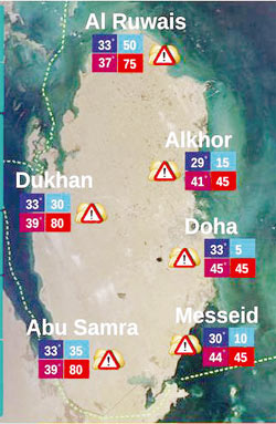 ദോഹ: രാജ്യത്ത് ഈയാഴ്ച മുഴുവന് ശക്തമായ പൊടിക്കാറ്റ് വീശുമെന്ന് കാലാവസ്ഥാ നിരീക്ഷണ വിഭാഗത്തിന്റെ മുന്നറിയിപ്പ്. പൊടിക്കാറ്റില് ദൂരക്കാഴ്ച കുറയുമെന്നതിനാല് വാഹനം ഓടിക്കുന്നവര് പ്രത്യേകം ശ്രദ്ധിക്കണമെന്ന് ആഭ്യന്തര മന്ത്രാലയം അറിയിച്ചു. മണിക്കൂറില് 65 കിലോമീറ്റര് വരെ ശക്തിയുള്ള കാറ്റ് വീശുമെന്നാണ് അറിയിപ്പില് പറയുന്നത്. കഴിഞ്ഞ രണ്ട് ദിവസമായി ശക്തമായ കാറ്റ് രാജ്യത്തുടനീളം വീശിക്കൊണ്ടിരിക്കുകയാണ്. രാജ്യത്ത് ചൂട് കൂടിക്കൊണ്ടിരിക്കുകയാണ്. എന്നാല്, കാറ്റില് ചൂടിന് അല്പം ശമനം ഉണ്ട്.