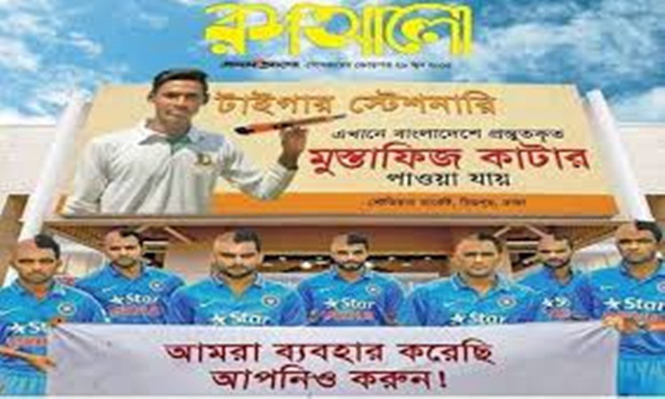 ഇന്ത്യൻ ക്രിക്കറ്റ് ടീം അംഗങ്ങളെ പരിഹസിച്ച് ബംഗ്ലാദേശ് പരസ്യം.അടുത്തിടെ മൂന്ന് ഏകദിന മല്സരങ്ങളില് ബംഗ്ലാദേശ് ഇന്ത്യയെ പരാജയപ്പെടുത്തിയിരുന്നു. തുടര്ന്ന് ഇന്ത്യന് ടീമിനെ പരിഹസിച്ചാണ് പരസ്യം പ്രത്യക്ഷപ്പെട്ടിരിക്കുന്നത്. പ്രോതൊം അലോ എന്ന ആക്ഷേപഹാസ്യ മാഗസിനിലാണ് വിവാദ ചിത്രം പ്രസിദ്ധീകരിച്ചിരിക്കുന്നത്. ഇന്ത്യന് ക്രിക്കറ്റ് ടീമിന്റെ ഫോട്ടോ ഷോപ്പ് കാരിക്കേച്ചറാണിതില് ഉള്പ്പെടുത്തിയിരിക്കുന്നത്. ഇന്ത്യന് ബാറ്റ്സ്മാന്മാരെ തുടരെ തുടരെ പവലിയനിലേക്ക് മടക്കിയ മുസ്ഫിസൂര് റഹ്മാന് ഒരു ബ്ലേഡുമായി നില്ക്കുകയും, അതിനു താഴെ ഇന്ത്യന് ടീം അംഗങ്ങള് തലയില് പകുതി മുടിയുമായി നില്ക്കുന്നതുമാണ് പരസ്യം. ഇന്ത്യന് നായകന് എം.എസ് ധോണി, ഉപനായകന് വിരാട് കോഹ്ലി, ധവാന്, അശ്വിന്, ജെഡേജ, രോഹിത് ശര്മ, രഹാനെ എന്നീ താരങ്ങളാണ് പരസ്യത്തില് പകുതി മുടിയോട് കൂടി നില്ക്കുന്നത്. ‘ഞങ്ങള് ഇത് ഉപയോഗിച്ചു, നിങ്ങളും ഉപയോഗിക്കൂ’ എന്നൊരു അടിക്കുറിപ്പും പരസ്യത്തിനൊപ്പമുണ്ട്. അതേസമയം പരസ്യത്തിനെതിരെ വിവാദങ്ങള് ഉയര്ന്നിട്ടുണ്ട്. ഇന്ത്യ ബംഗ്ലാദേശ് ബന്ധത്തിന് വിള്ളല് വീഴ്തത്താന് പരസ്യം വഴിയൊരുക്കുമെന്ന് വരെ അഭ്യൂഹങ്ങള് പുറത്ത് വന്നിട്ടുണ്ട്.