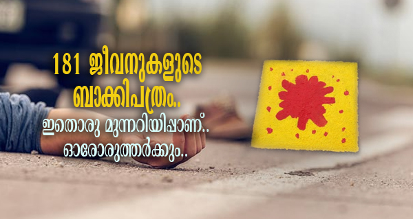 കോഴിക്കോട് നഗരത്തിലും അനുബന്ധ പ്രദേശങ്ങളിലെ റോഡുകളിലും മഞ്ഞയില് രക്തക്കളറുള്ള അടയാളം കണ്ടാല് ഇനി രണ്ടിലൊന്ന് ചിന്തിക്കേണ്ടതില്ല. അമിതവേഗതയും അശ്രദ്ധയും മനുഷ്യ ജിവനെടുത്ത സ്ഥലങ്ങളായിരിക്കും അതിലോരോന്നും എന്നെനിക്ക് അറിയാം. കഴിഞ്ഞ ഒരു വര്ഷത്തിനിടയില് കോഴിക്കോട് നഗരപരിധിയില് 181 ജീവനുകളാണ് റോഡപകടങ്ങളില് പൊലിഞ്ഞത്. ഇനിയും രക്തം ചിന്താതിരിക്കാന് കോഴിക്കോട് സിറ്റി ട്രാഫിക്ക് പൊലീസാണ് മഞ്ഞയില് രക്തകളറുള്ള ഈ അടയാളങ്ങള് റോഡില് പതിച്ച് മുന്നറിയിപ്പ് നല്കുന്നത്.