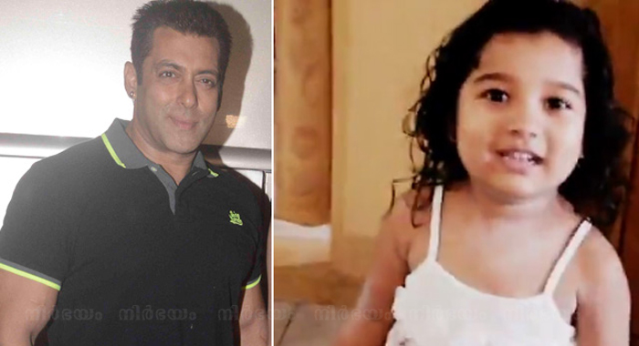 ബോളിവുഡ് സൂപ്പർ സ്റ്റാർ സൽമാൻ ഖാനോട് ആരാധിക നടത്തിയ വിവാഹാഭ്യർഥന സോഷ്യൽ മീഡിയയിൽ തരംഗമാകുന്നു. ഇതിലെന്ത് പുതുമ എന്നു ചിന്തിക്കുന്നുണ്ടെങ്കിൽ തെറ്റി. ഈ ആരാധികയുടെ പ്രായമാണ് ഇവിടെ ശ്രദ്ധേയം.വിവാഹാഭ്യർഥന നടത്തിയത് കൗമാരിക്കാരിയാണെന്ന് കരുതിയെങ്കിലും തെറ്റി. സൽമാനെ വിവാഹം കഴിക്കാൻ ആഗ്രഹിക്കുന്ന ഈ ആരാധിക മൂന്നു വയസുകാരിയാണ്. നിത്യയെന്നാണ് ഈ കൊച്ചു മിടുക്കിയുടെ പേര്.