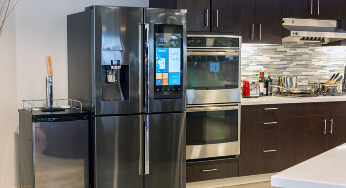 രണ്ട് വര്ഷങ്ങള്ക്കു മുന്പ് സാംസങ് തന്നെ അവതരിപ്പിച്ച ഇന്റര്നെറ്റ് കണക്റ്റഡ് റഫ്രിജറേറ്ററിന്റെ പുതിയ രൂപമാണിത്. അടുക്കളയില് വെയ്ക്കാവുന്ന ഫാമിലി ഹബ് 3.0 എന്ന സ്മാര്ട്ട് റഫ്രിജറേറ്ററിനോട് വീട്ടുകാര്ക്ക് സംസാരിക്കാം. അന്നത്തെ ആഹാരം എന്തായിരിക്കണമെന്ന് ഒരാളോടെന്ന പോലെ ചര്ച്ചചെയ്യാം, അവരുടെ ആഹാരങ്ങള് കേടുവന്നിട്ടുണ്ടോ എന്ന് ചോദിച്ചറിയാം, വീട്ടിലെ മറ്റ് ഉപകരണങ്ങളെ നിയന്ത്രിക്കുകയുമാകാം.